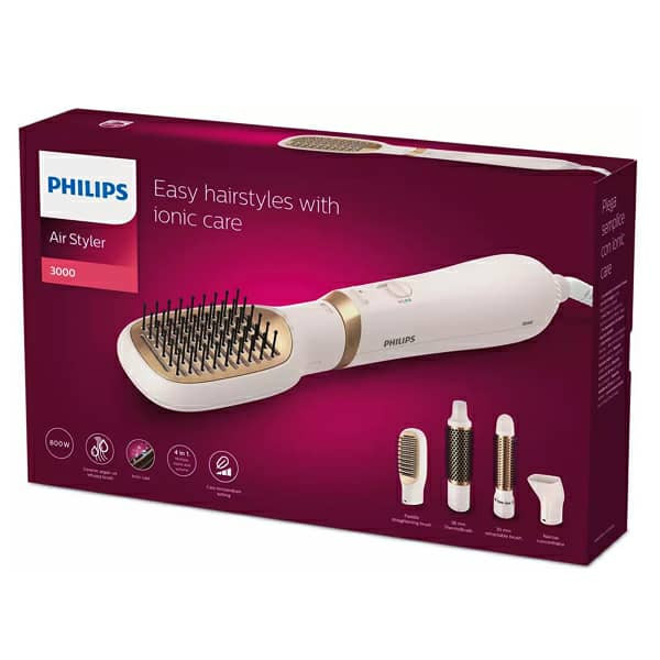 خشک کردن و حالت دادن به یکباره Philips Air Styler 3000 به شما امکان می دهد سبک های طبیعی زیبایی ایجاد کنید و در عین حال درخشندگی بیشتری را با مراقبت یونی ارائه دهید. 4 ضمیمه هم برای موهای بلند و هم برای موهای کوتاه مناسب هستند، بنابراین می توانید از یک ظاهر طراحی آسان لذت ببرید.